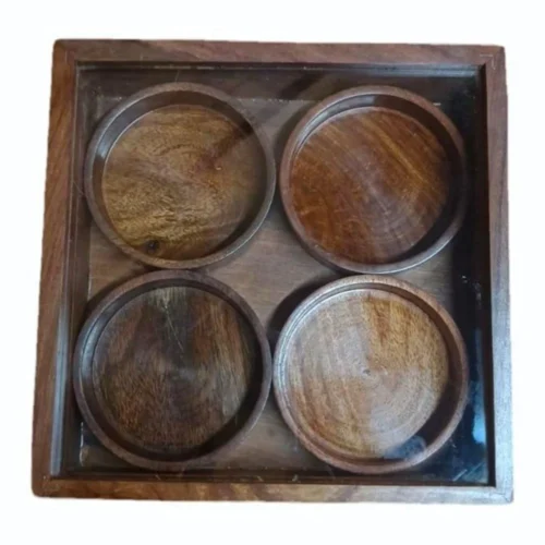 4 Compartment Wooden Square Spice Box, Capacity: 100 mL