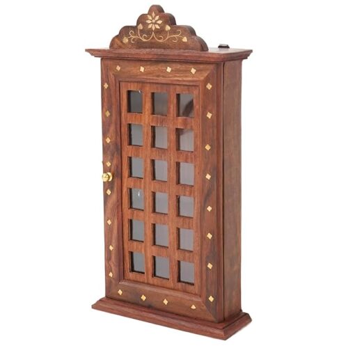Handicraft Sheesham Wooden Key Holder-Square Design Keychain Holder – (12.5 x 6.5) Inch