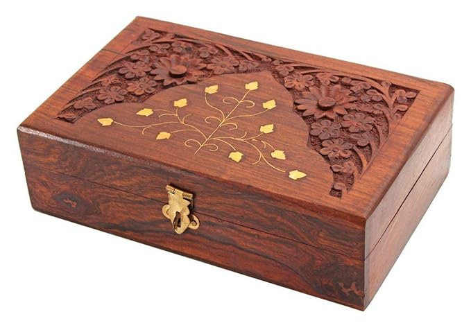 - ABOUT CARVING: The carving we have used on this wooden box for jewelry is the best of Antique Mughal art, and brass filling is one of the traditional arts in the wood industry. Hardness of the Sheesham wood makes Mughal Carving almost impossible, but the excellent skill of our workers makes it possible.