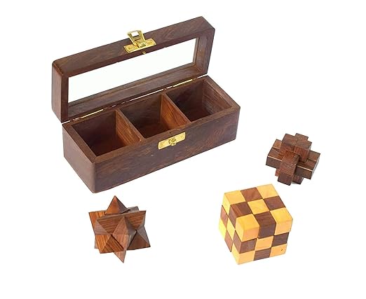 Wooden Puzzle Game – Handcrafted Pure Natural Rosewood Brain Teaser for Teens, Adults & Children (Set 3)